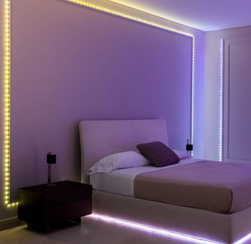 Постоянный монтаж предназначен для случаев, когда требуется долговременная, аккуратная и почти незаметная декоративная подсветка: круглогодичное освещение ниш, потолков, телевизионных зон, встроенные решения в интерьере. Такой монтаж ориентирован на эстетику, скрывание проводки и высокую надежность крепления.