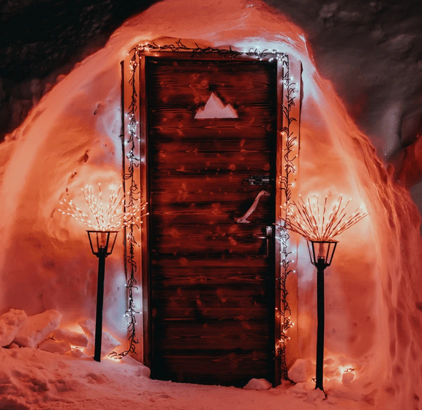 Оформление дверных рам гирляндой привлекает внимание к архитектурным деталям и создает праздничное настроение при входе в комнату.