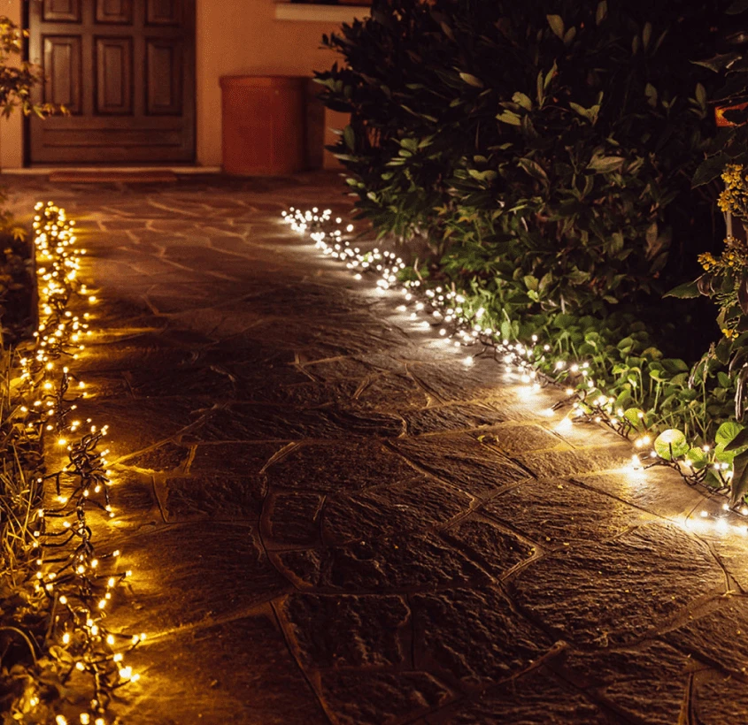 Яркость также важна: на улице свет должен быть заметным издалека. Поэтому гирлянды с высокой световой мощностью выглядят гораздо эффектнее.