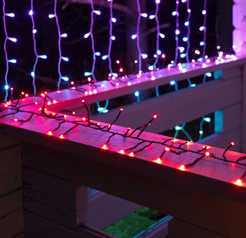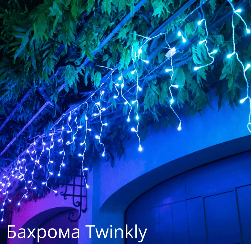 Twinkly Icicle (бахрома) — подчеркивает архитектурные линии, делает дом более новогодним и живым.